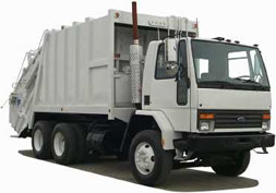 Upon my arrival I see a huge compacting style garbage truck and a large semi-compacted Buick.
